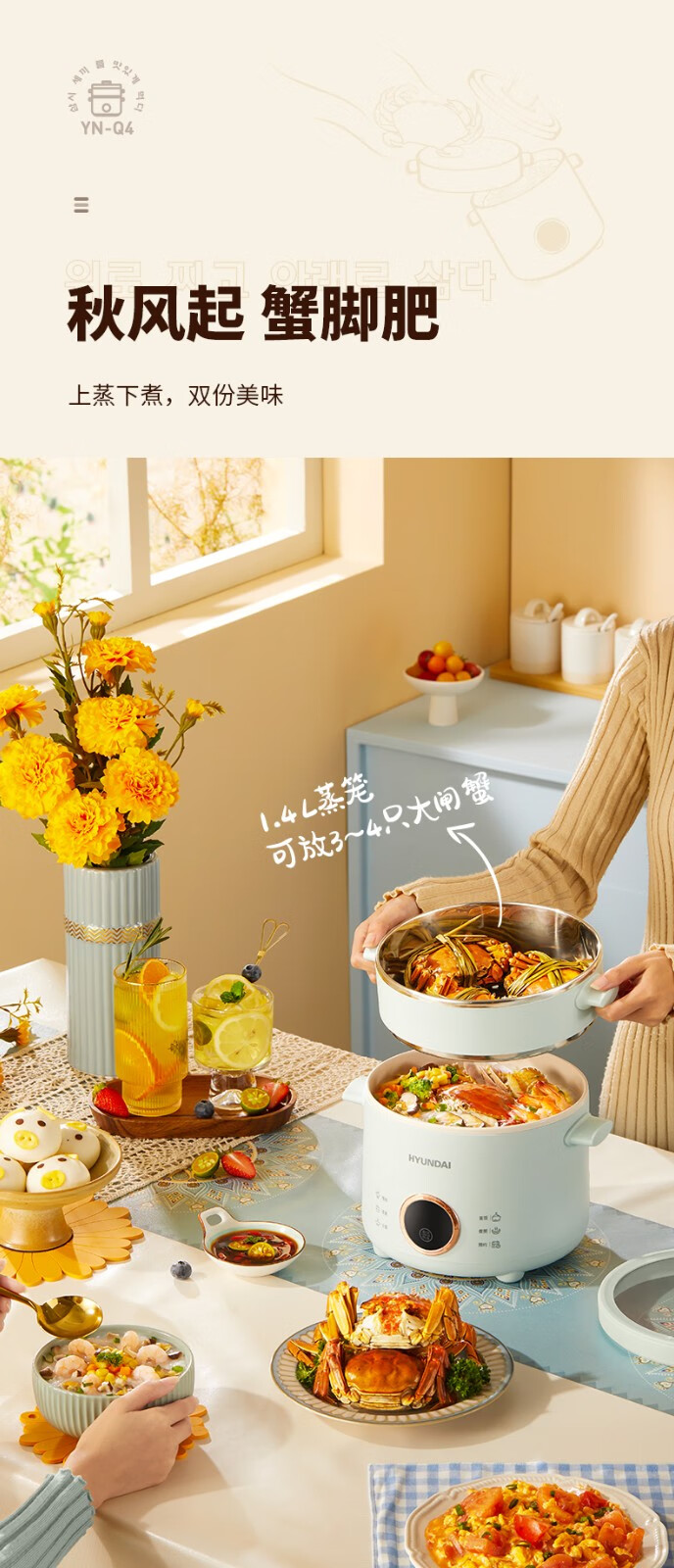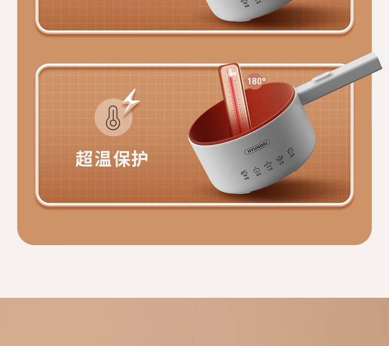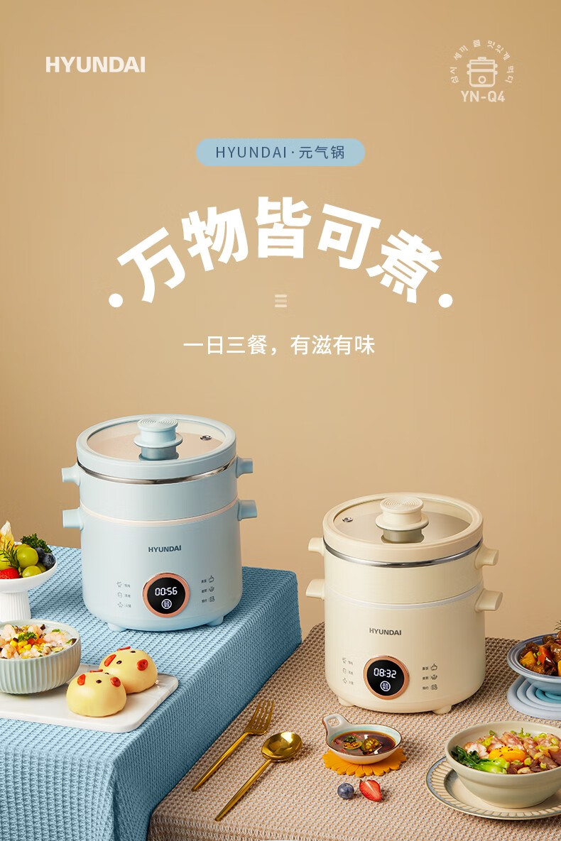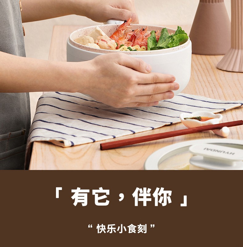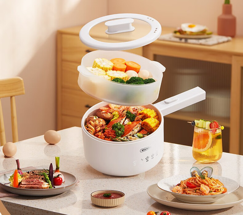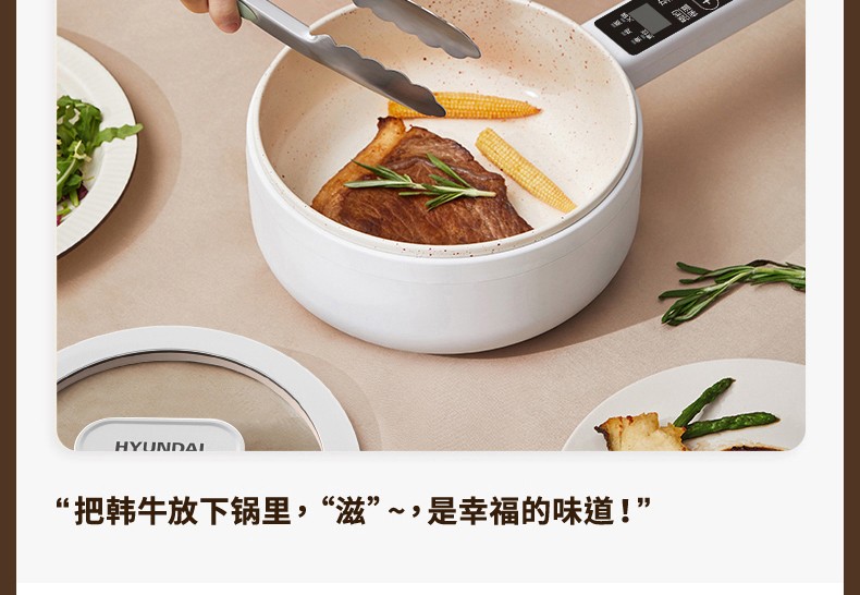 HYUNDAI 电煮锅电火锅陶瓷釉不粘煮面煎蛋电热小炒锅涮火锅宿舍锅小电锅