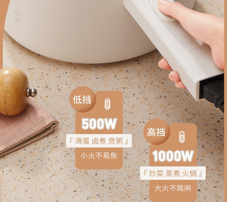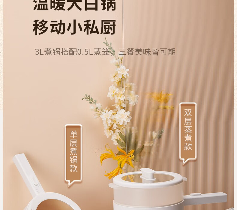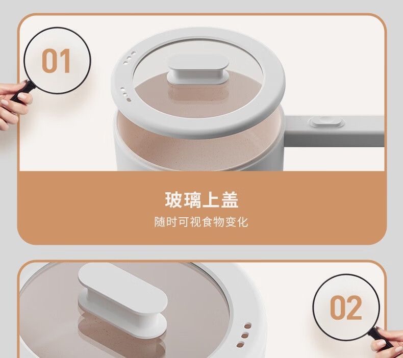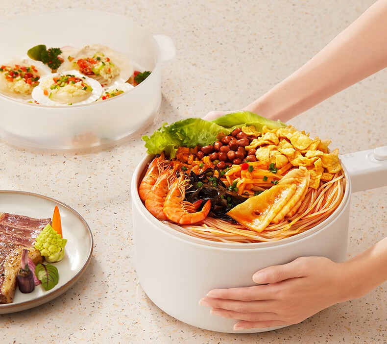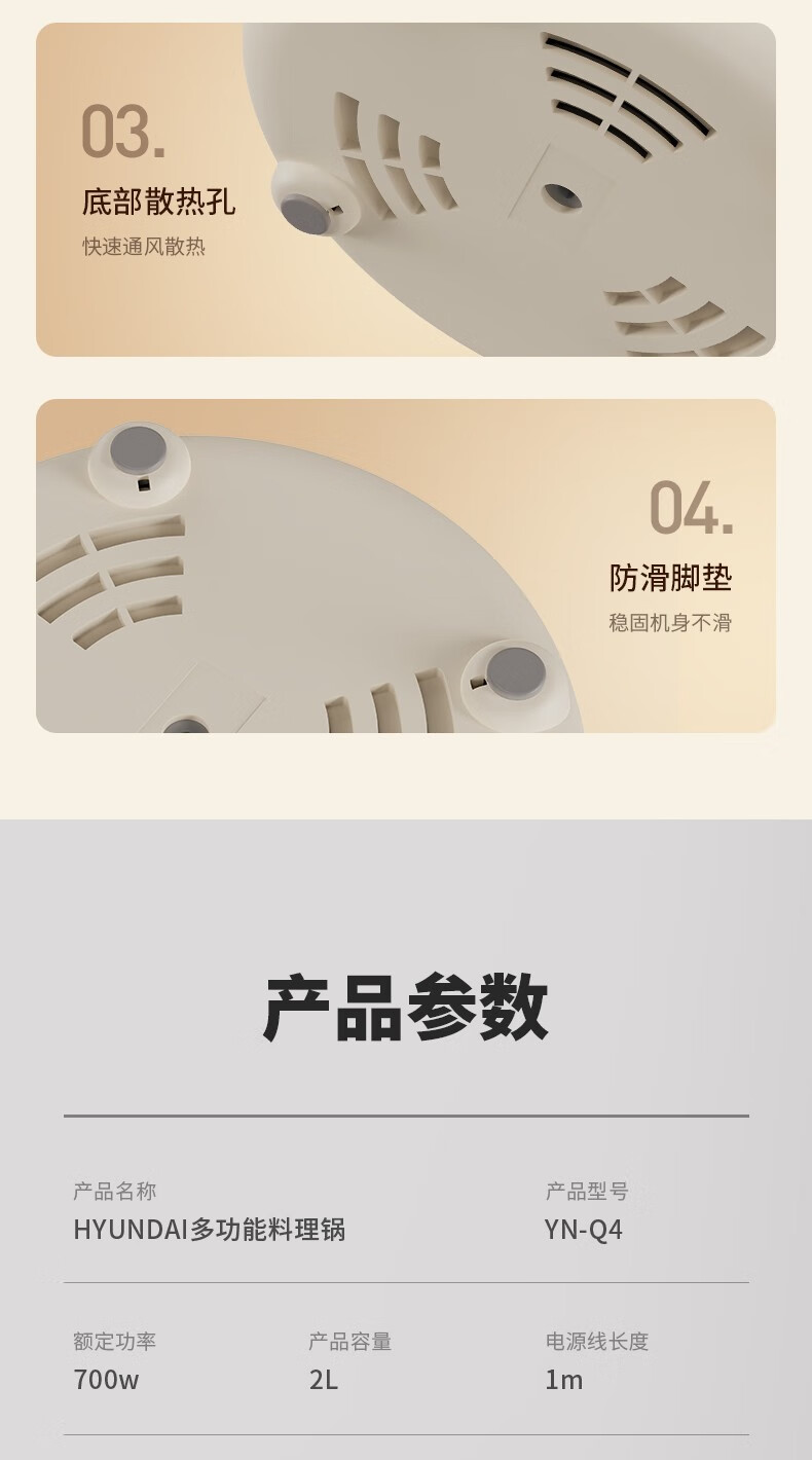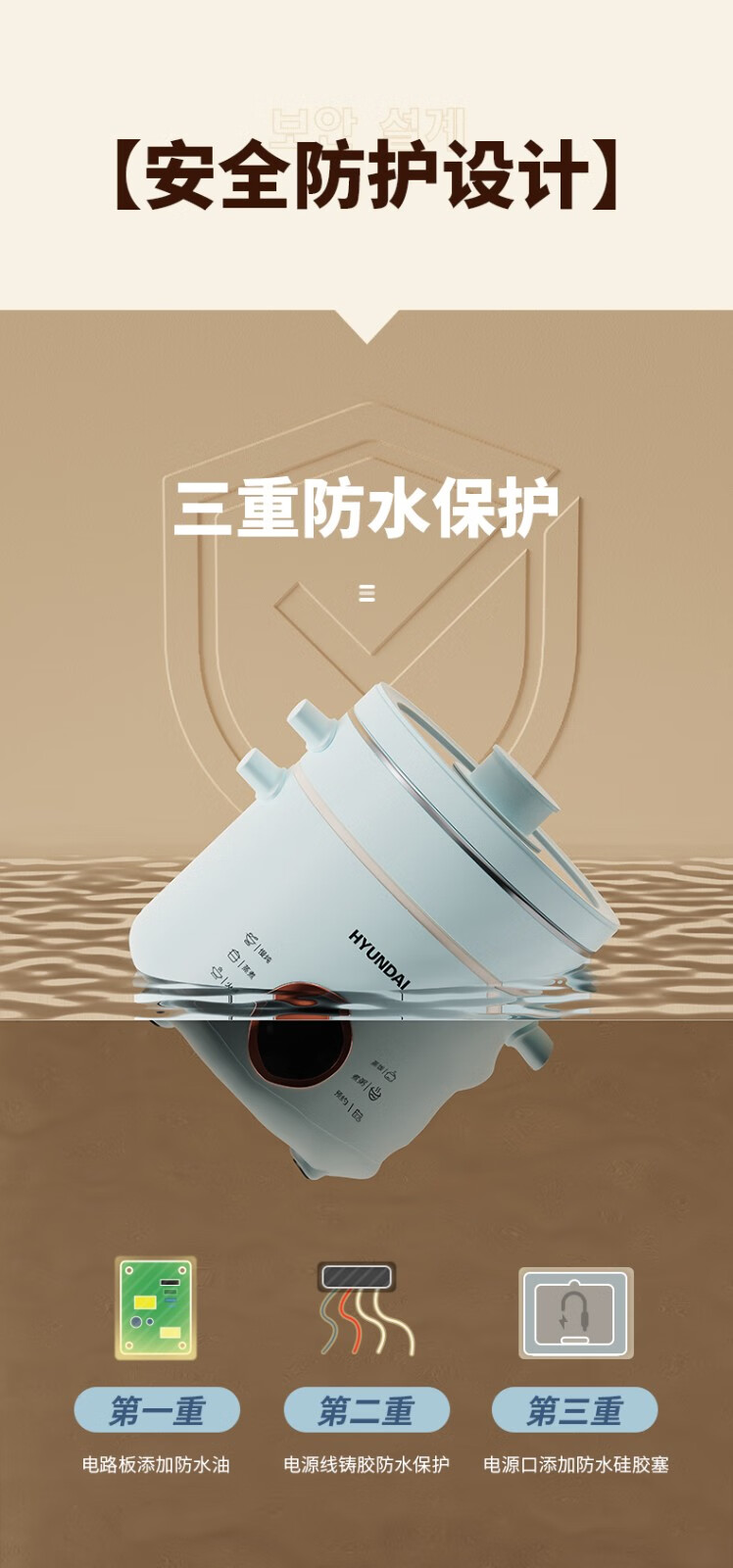 HYUNDAI 电煮锅电火锅陶瓷釉不粘煮面煎蛋电热小炒锅涮火锅宿舍锅小电锅